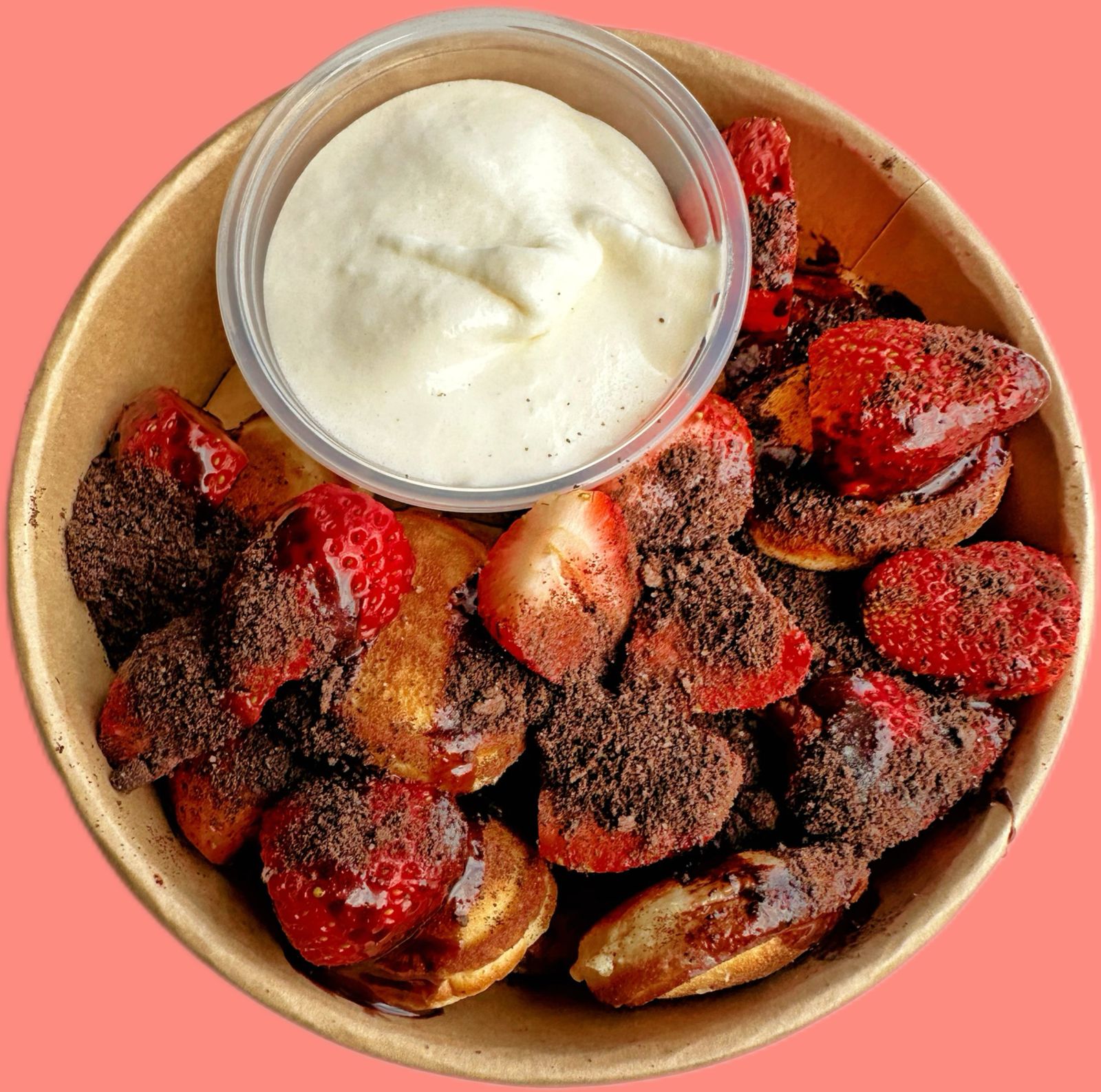 Vaso de 9oz. Fresas, Chocolate 70% amargo, crema de pistacho y Kataifi