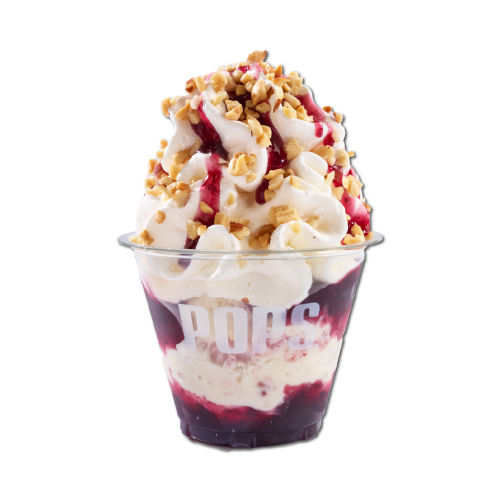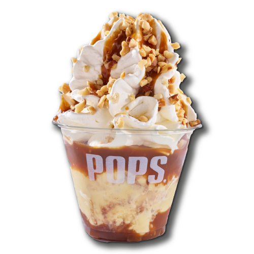 Deliciosa combinación de helado de café y helado de pistacho, con topping de chocolate, crema batida y semillas mixtas