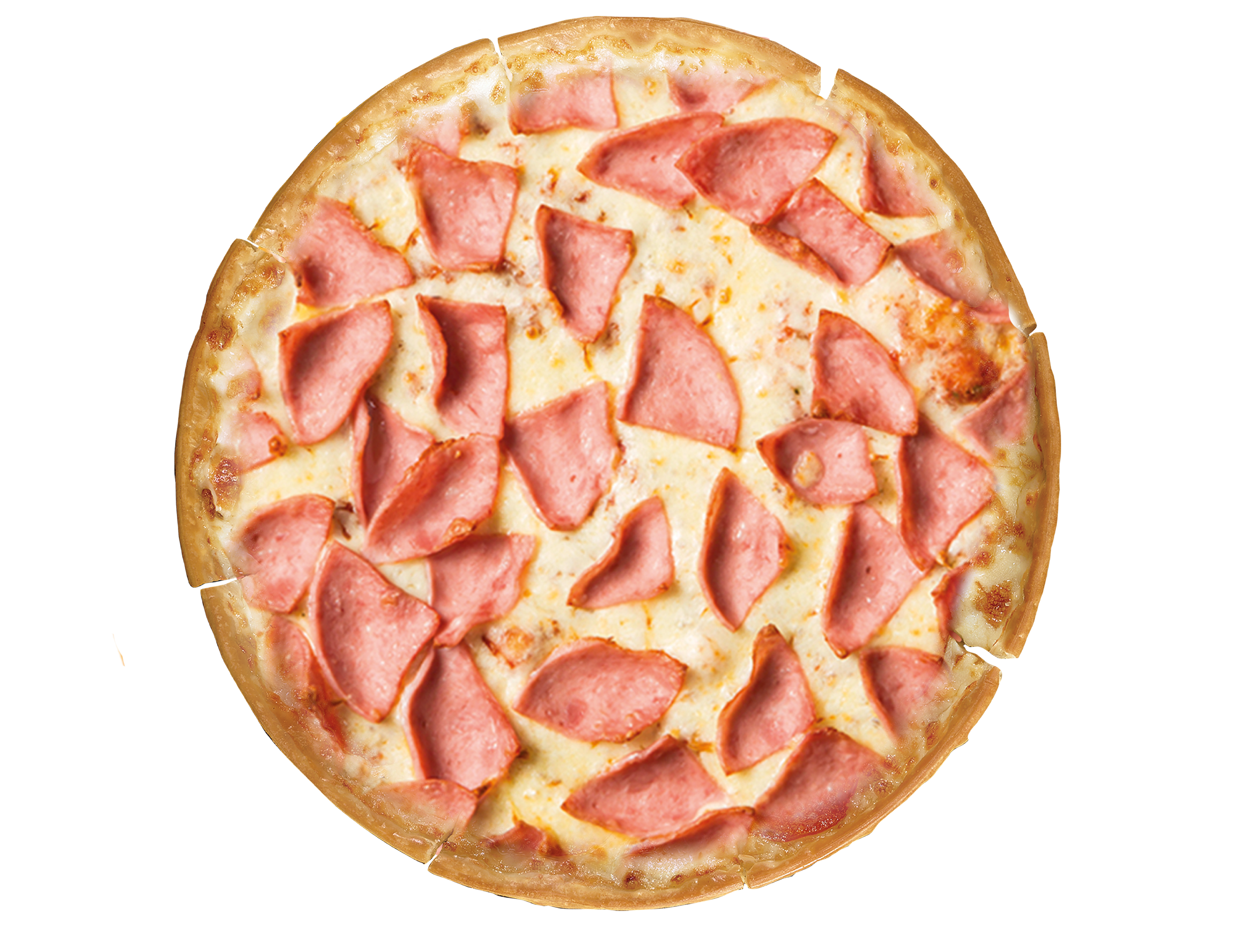 Pizza grande de 10 slices de jamón en masa artesanal.