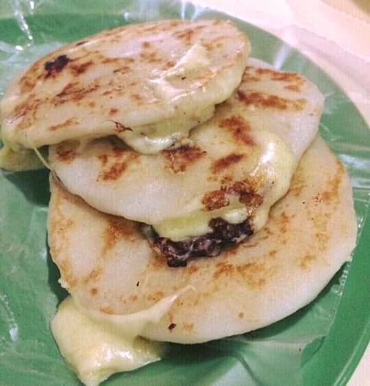 Pupusa rellena con una mezcla de 3 quesos de la casa y frijoles refritos