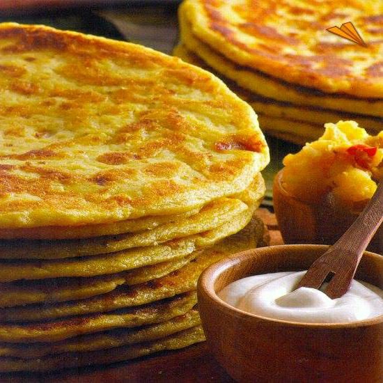 Deliciosa tortilla de queso, elaborada con queso en la masa y rellena de queso acompañada de natilla