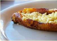 Delicioso plátano maduro entero con queso por dentro.