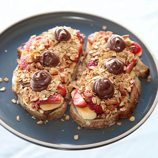 Pan de masa madre con 2 rebanadas. Nutella, fresas, banano y granola. Aplica restricciones, solo en San Antonio de Belén.