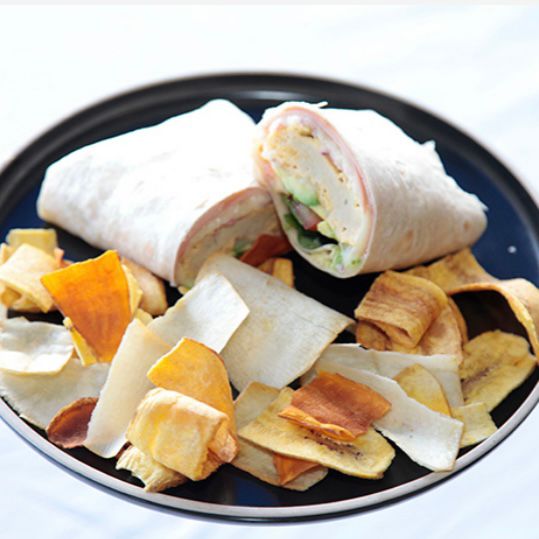 Huevos, Queso Mozarella, Aguacate, Espinaca, Cebolla Morada, Aderezo Italiano y Tomate acompañado de Chips.