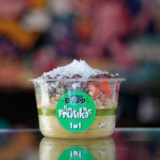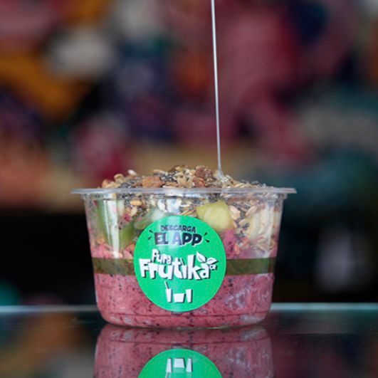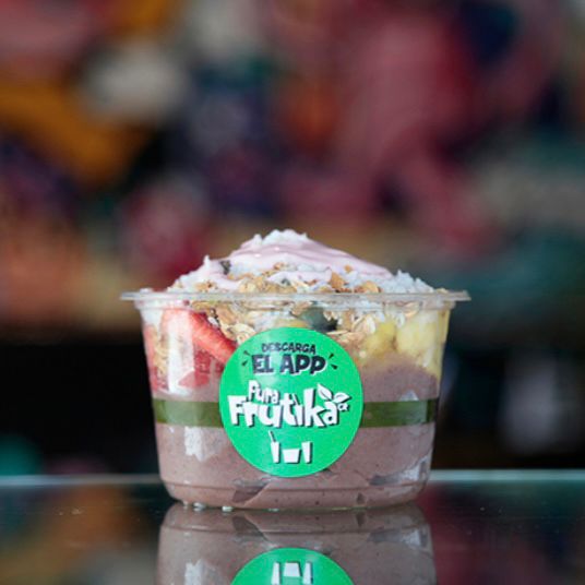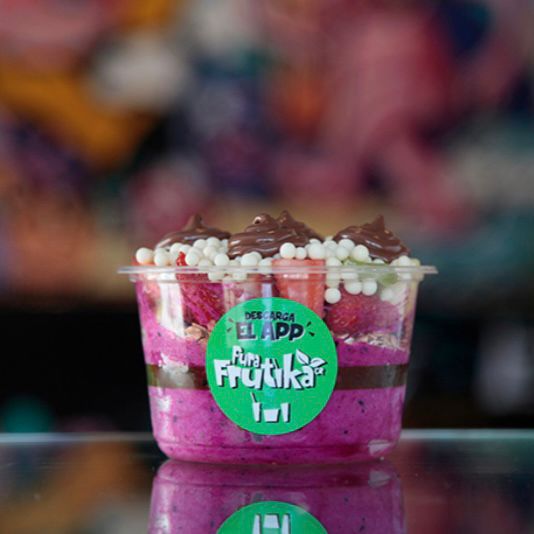 Incluye 1 base, 3 frutas y 3 toppings a elegir.