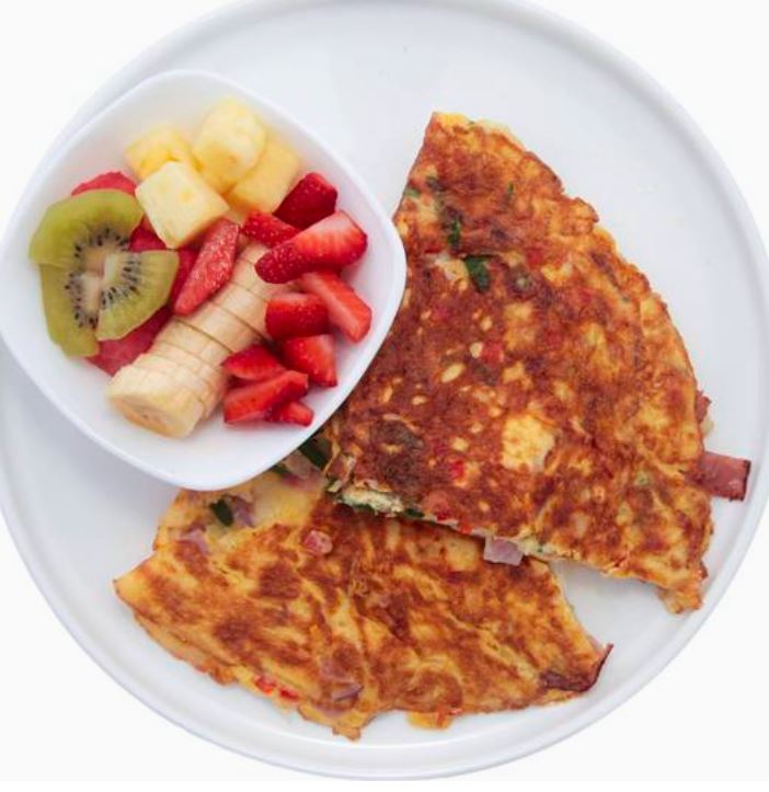 Huevo- Jamón- Queso Mozzarella- Espinaca- Cebolla- Chile Dulce- Incluye té de la casa ó Jugo de Naranja.