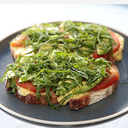 Pan de masa madre con 2 rebanadas. Aguacate, espinaca, queso semiduro y tomate. Aplica restricciones, solo en San Antonio de Belén.