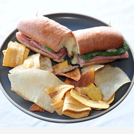 Jamón de Pavo, Peperoni, Cebolla Morada, Tomate, Queso Mozzarella y Aderezo Italiano acompañado de Chips.