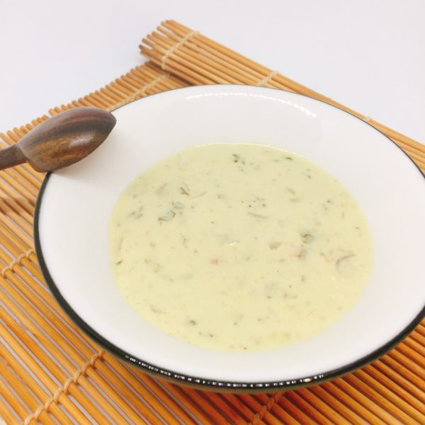 Por dentro: pepino, aguacate y surimi. Por fuera: semillas de ajonjolí.