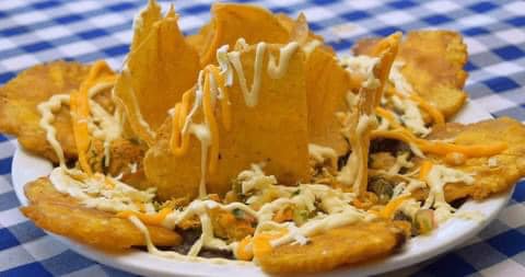 Frijoles y queso / fried smashed plantain.