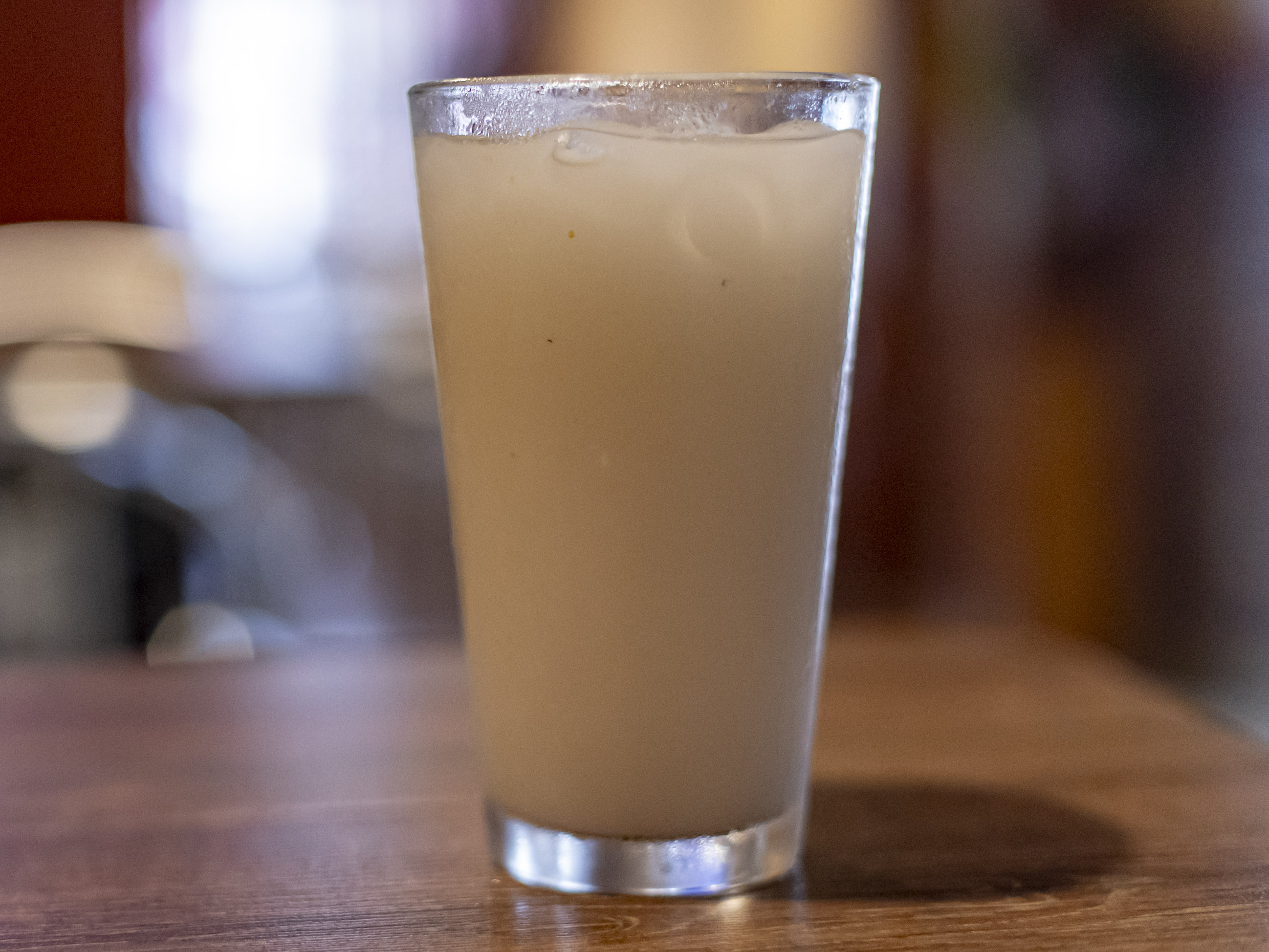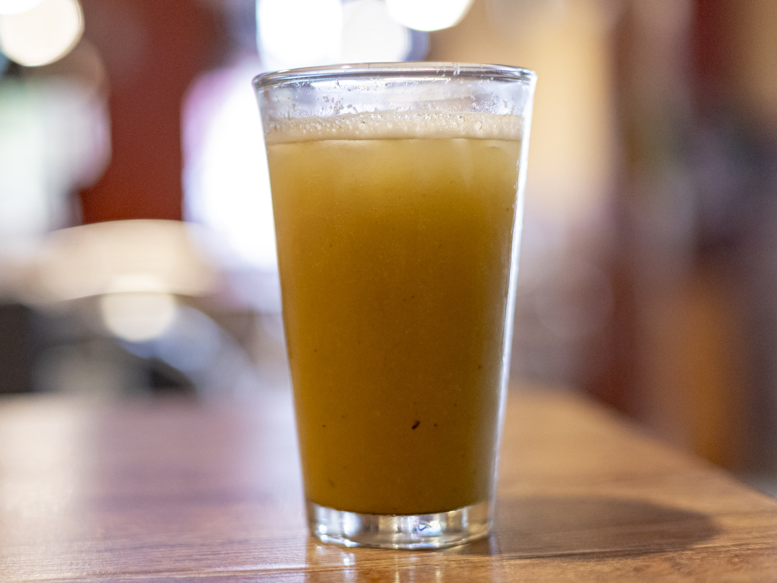 Con aros de cebolla, tocineta, queso, pepinillo con salsa barbacoa.