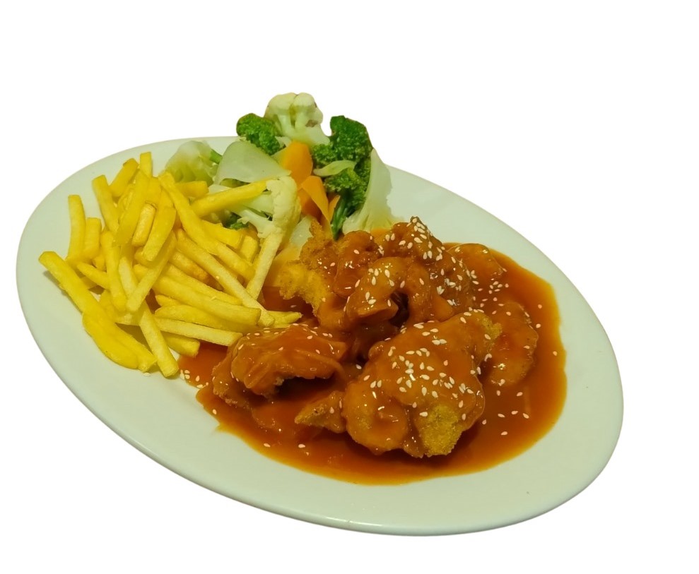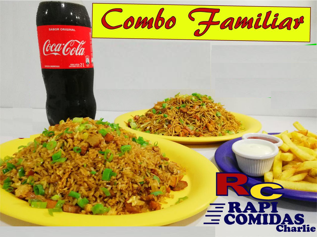 1 Entero de cantonés, 1 entero de chop suey, 1 orden de papas fritas grandes y Gaseosa de 2 L.