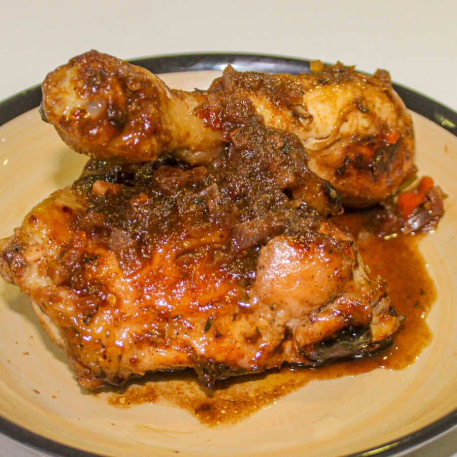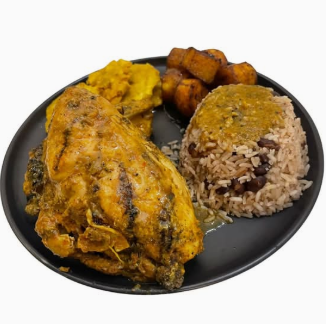 150 g De cerdo jerk o 1/4 de pollo jerk a la parrilla acompañado de festivals y ensalada