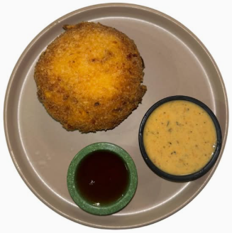 Albóndiga de Plátano Rellena de Frijoles y Queso