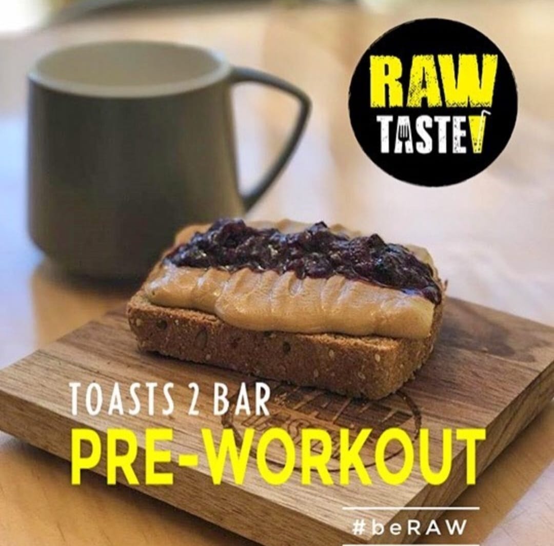 Tajada de pan integral con mantequilla de maní y mermelada de la casa sin azúcar.