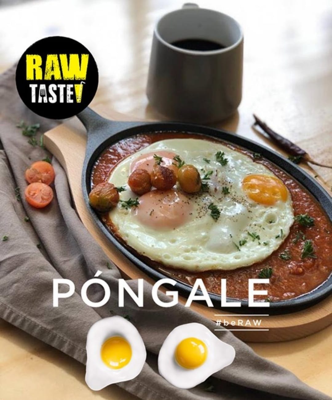 3 Huevos al gusto con salsa de tomate natural, acompañado con pan o tortillas.