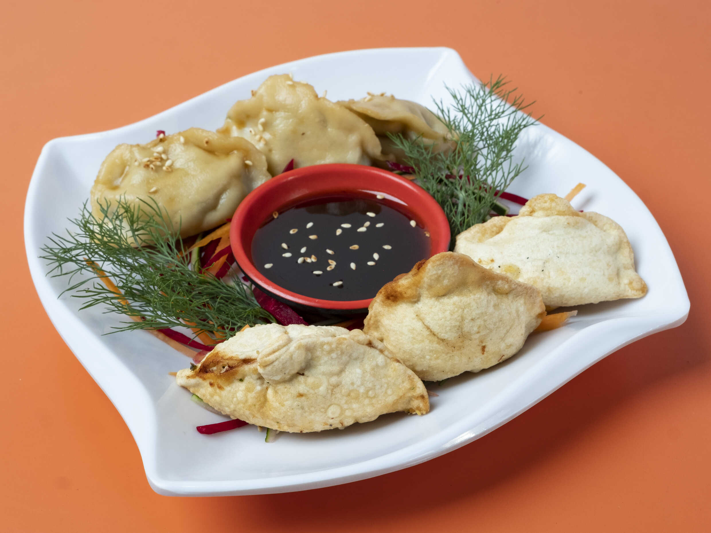 Pueden ser al vapor o fritas, Acompañadas de Salsa Soya o Anguila a escoger