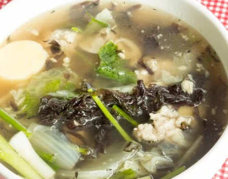 Cerdo molido, hongo negro, bambú, tofu y huevo.
