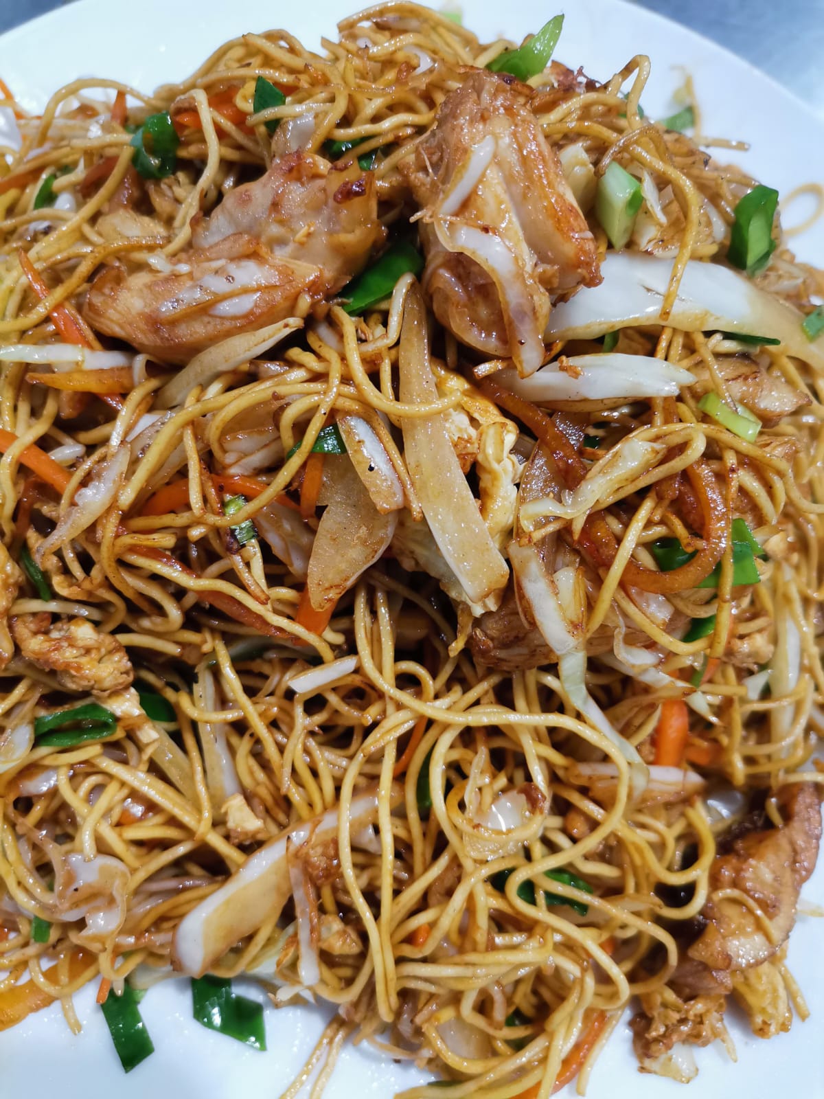 Chow mien con pollo.lechon.jamon Entero