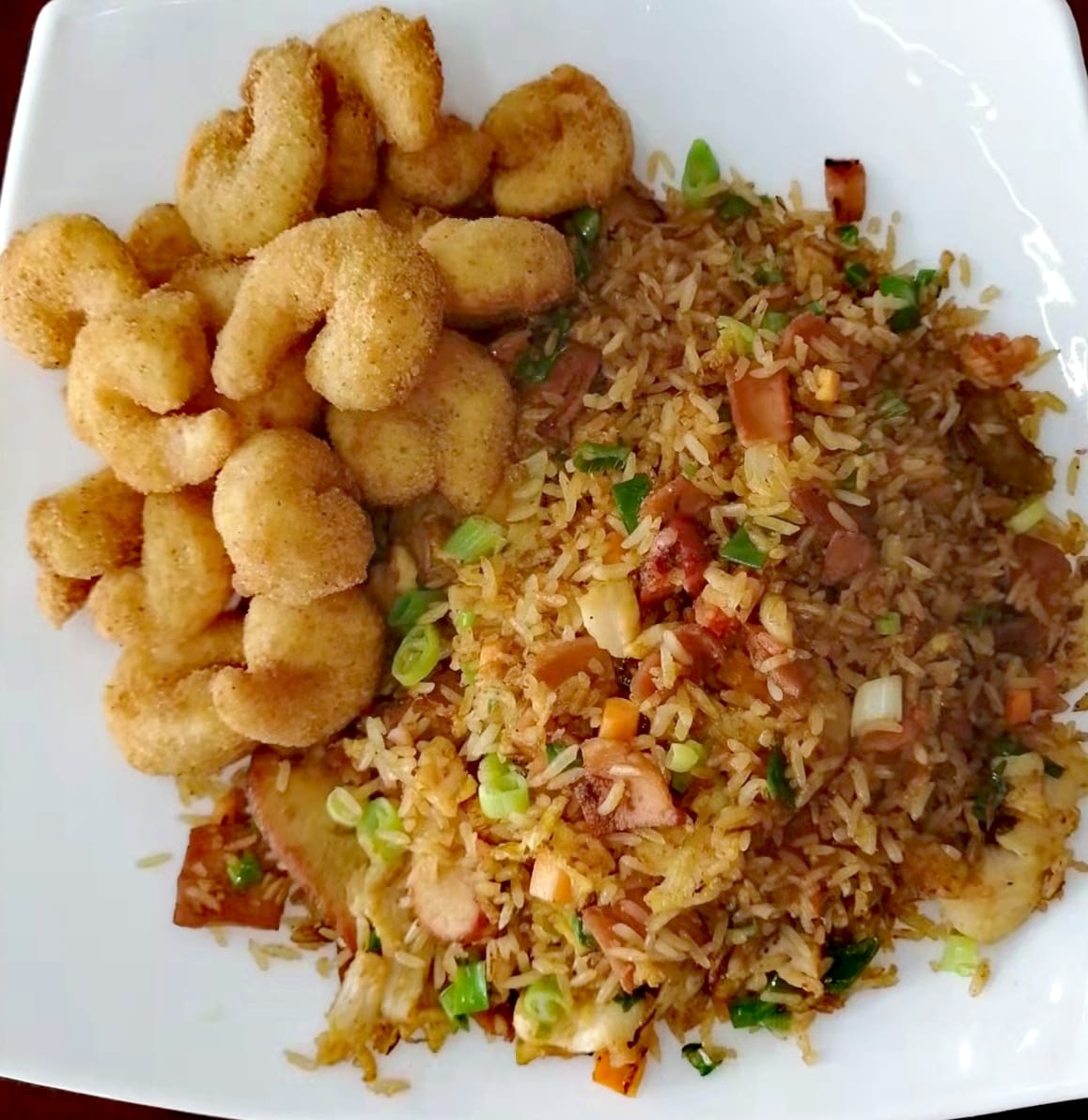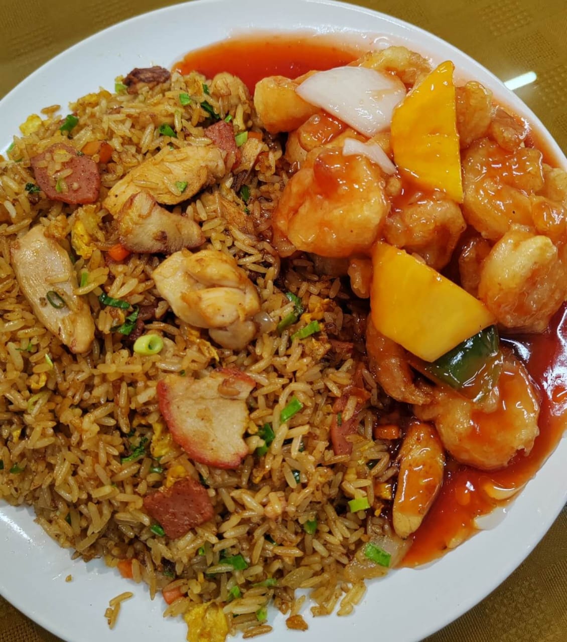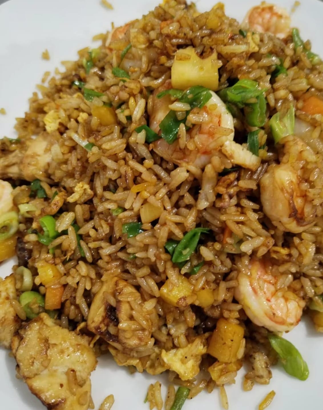 Arroz Frito con Pollo y camarones y pina