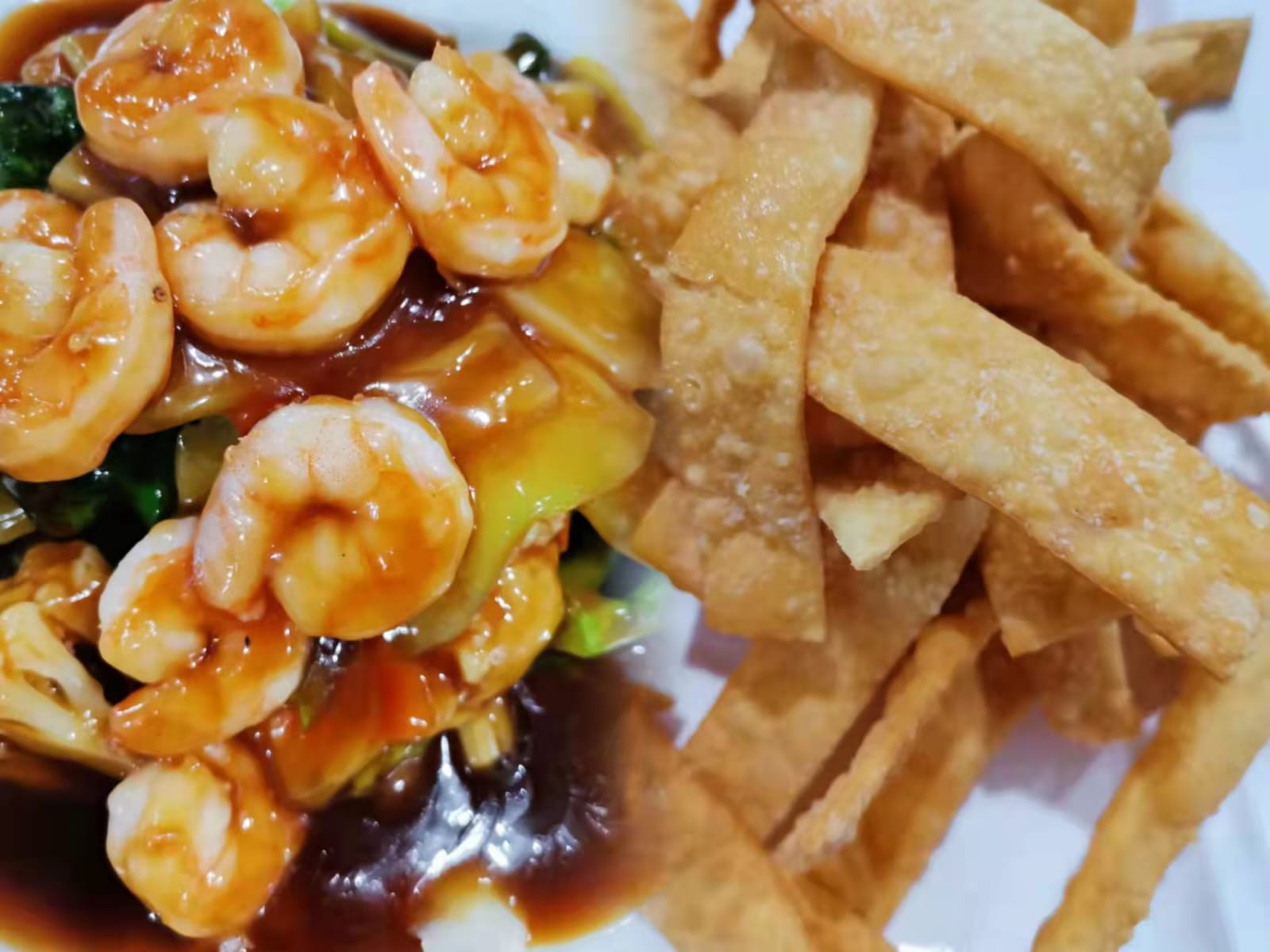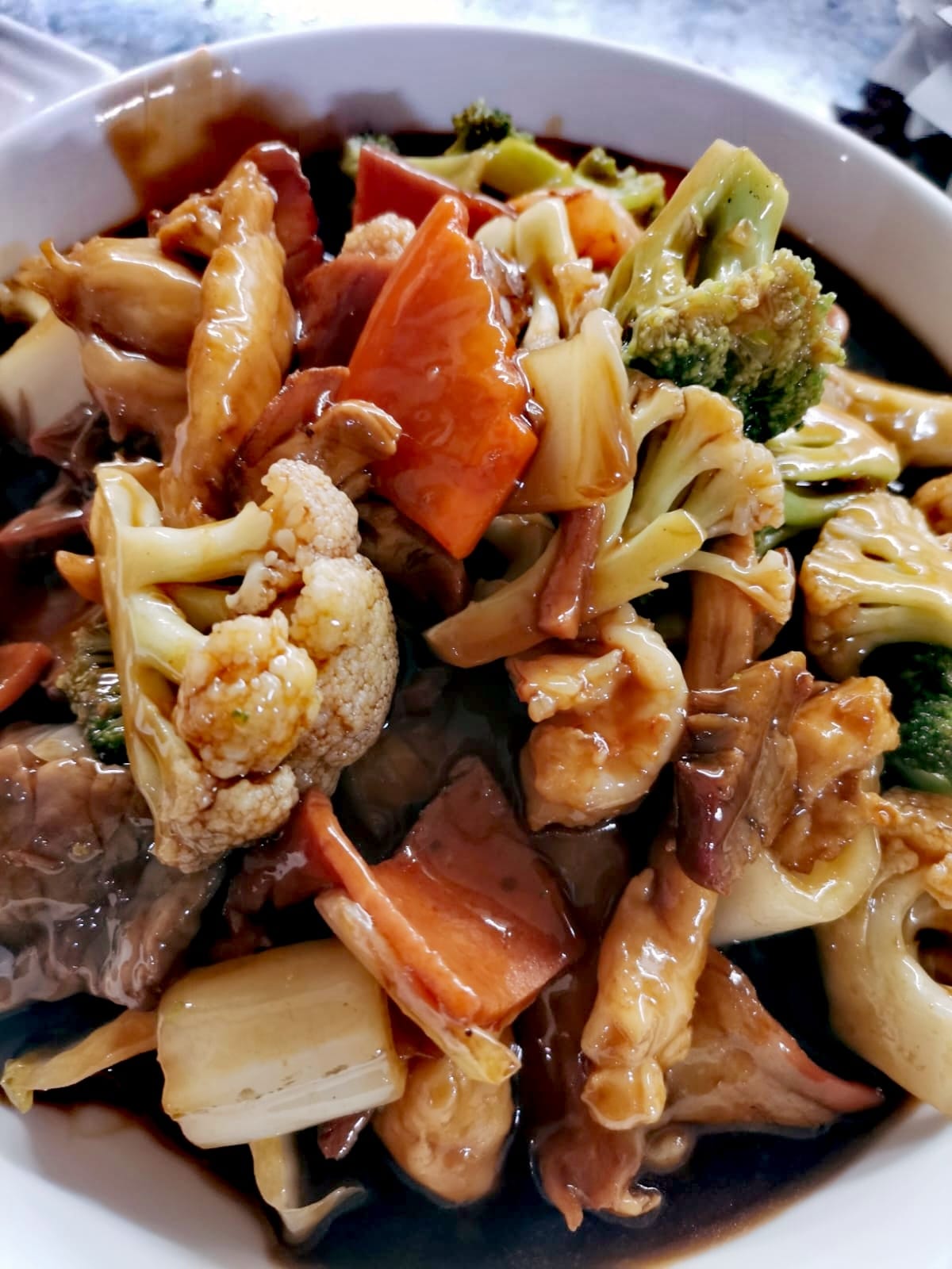 42#Chop Suey en salsa con camarones