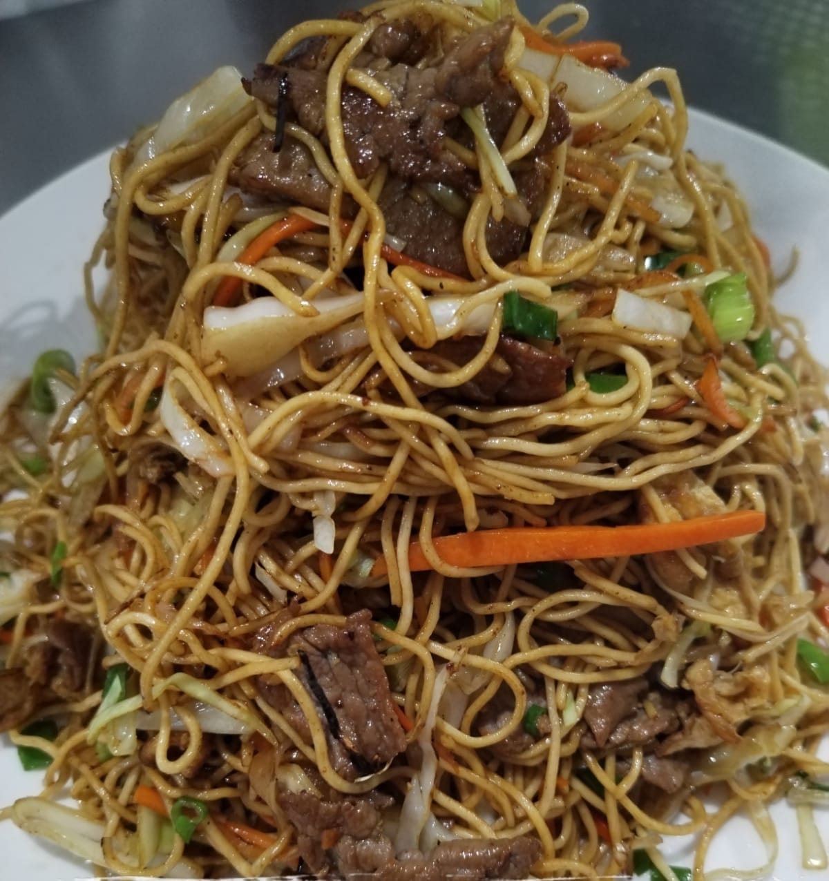 Chow mien con lomo de res Entero