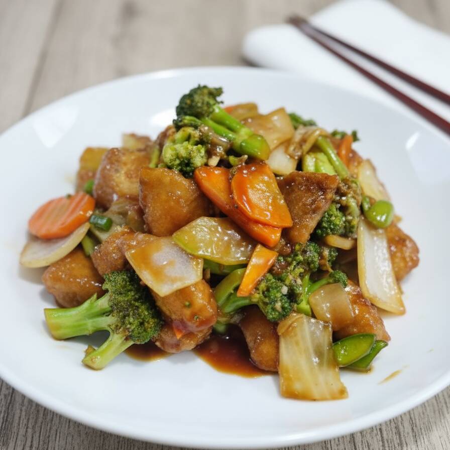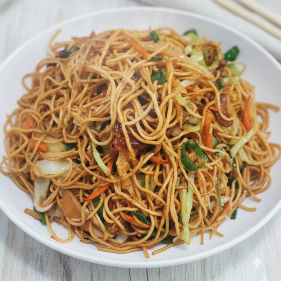 Chau Min Con Carne Mixta y Verduras en Salsa