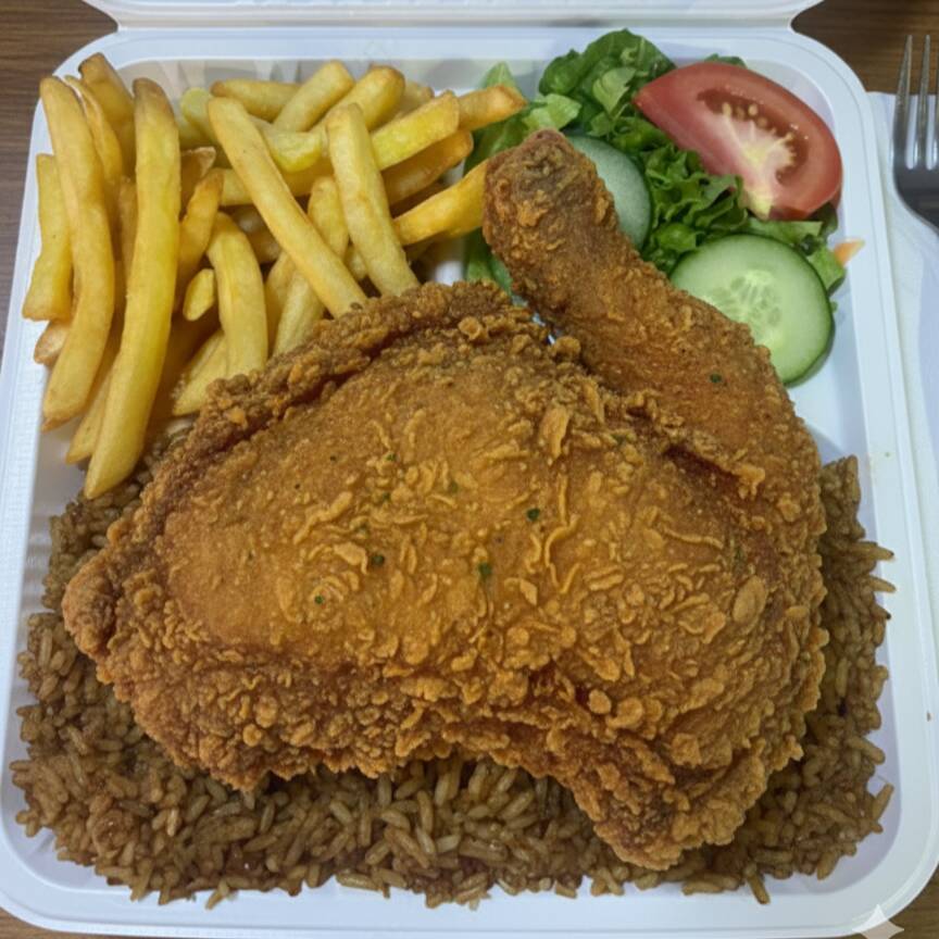 Medio Pollo Frito + Papas Fritas + Ensalada