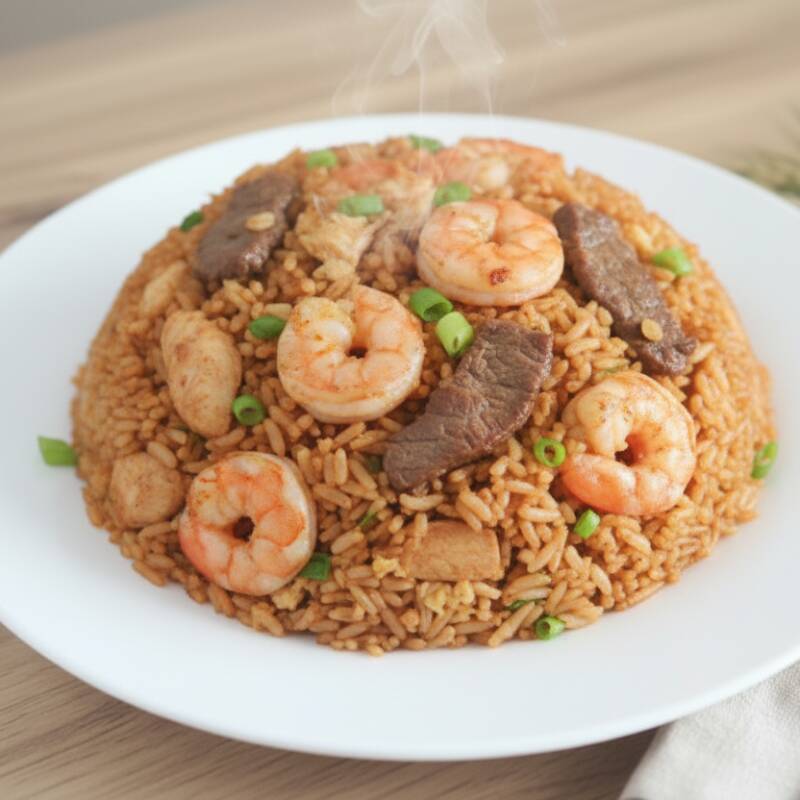 Arroz Frito Cantonés con Pollo, Lechón y Jamón