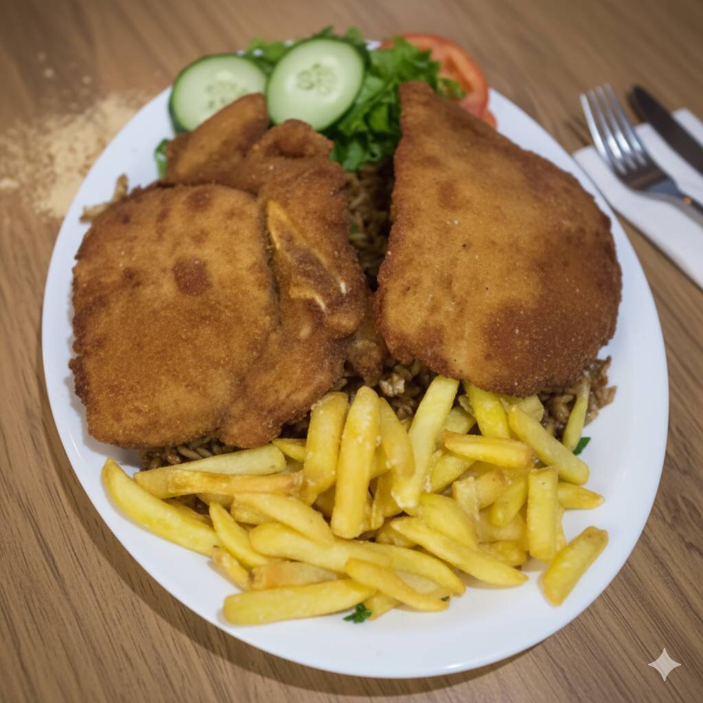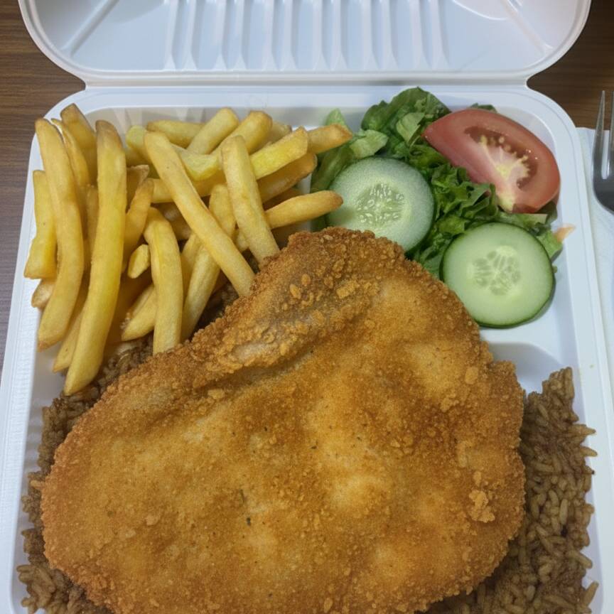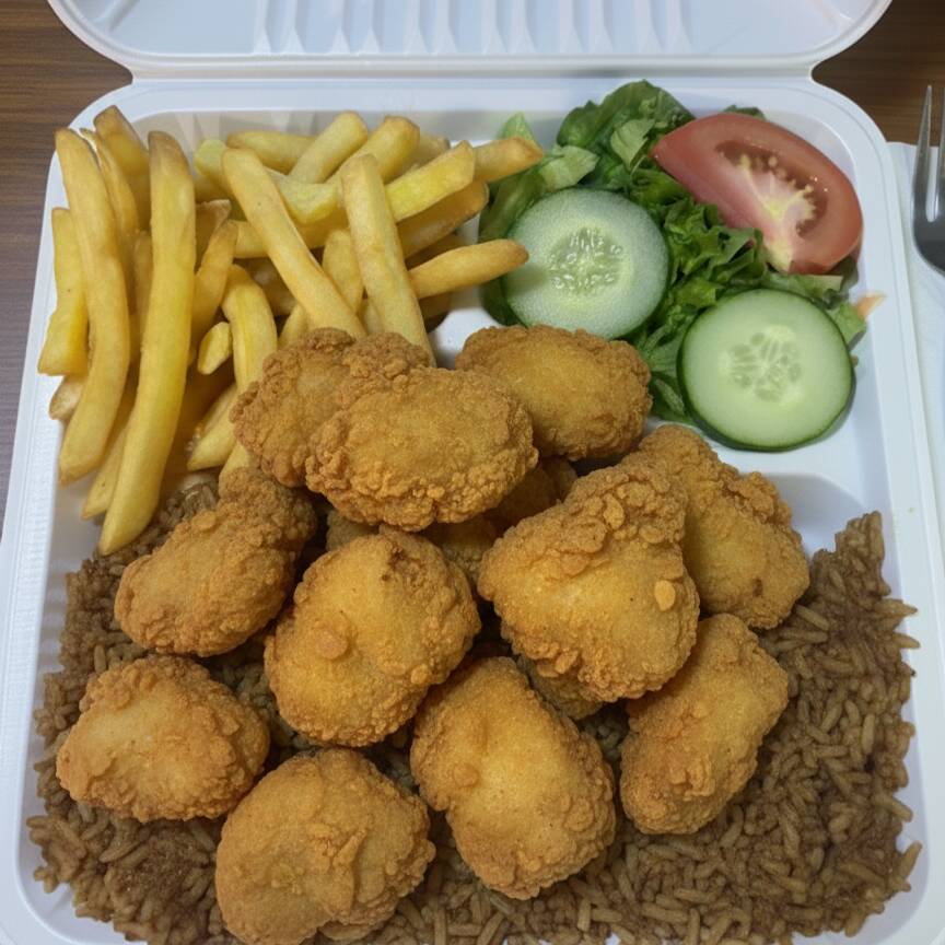 Trocitos de Pollo + Papas Fritas + Ensalada
