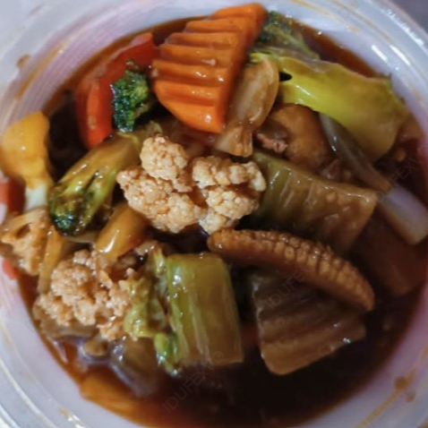 Champiñones, bambú, cebolla, chile dulce, apio en salsa de ostión.
