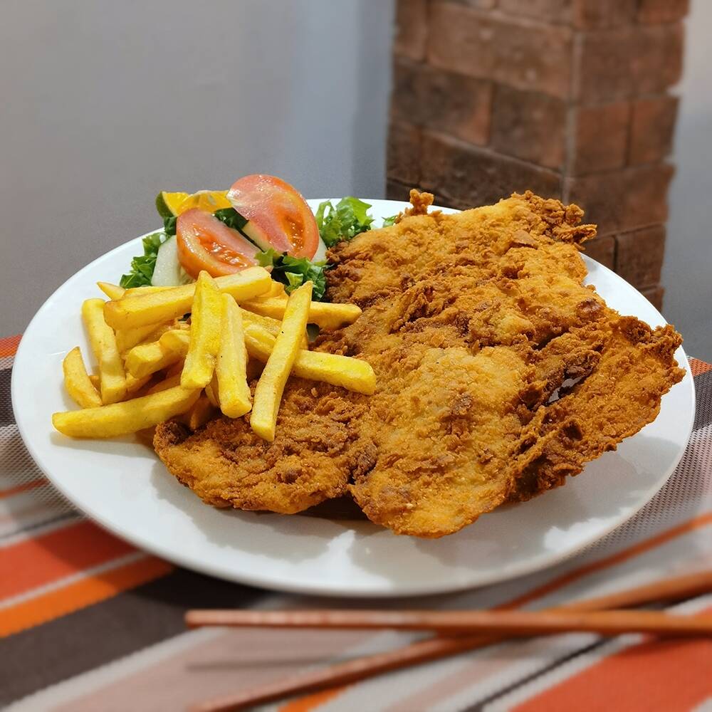 Chuleta Empanizada con Papas Fritas y Ensalada