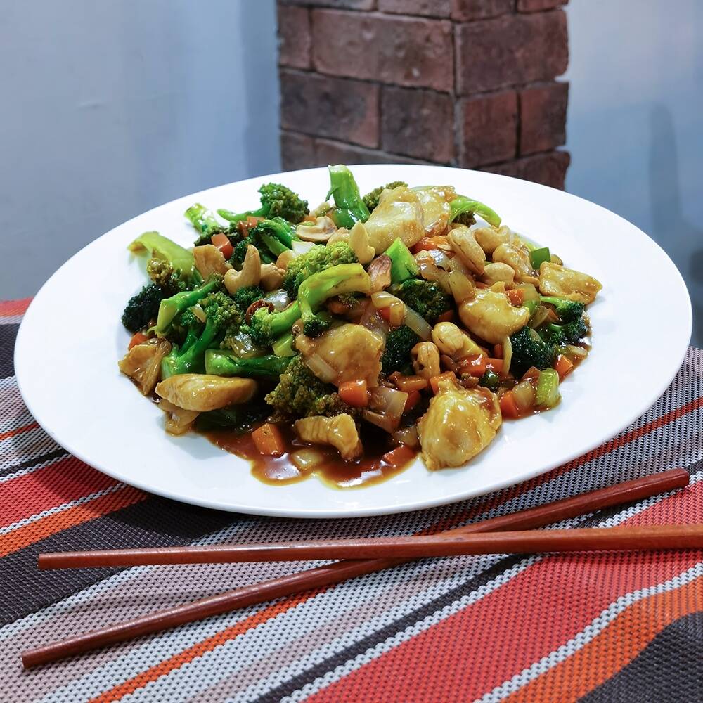 Pollo en Trocitos con Verduras en Salsa de Ostion
