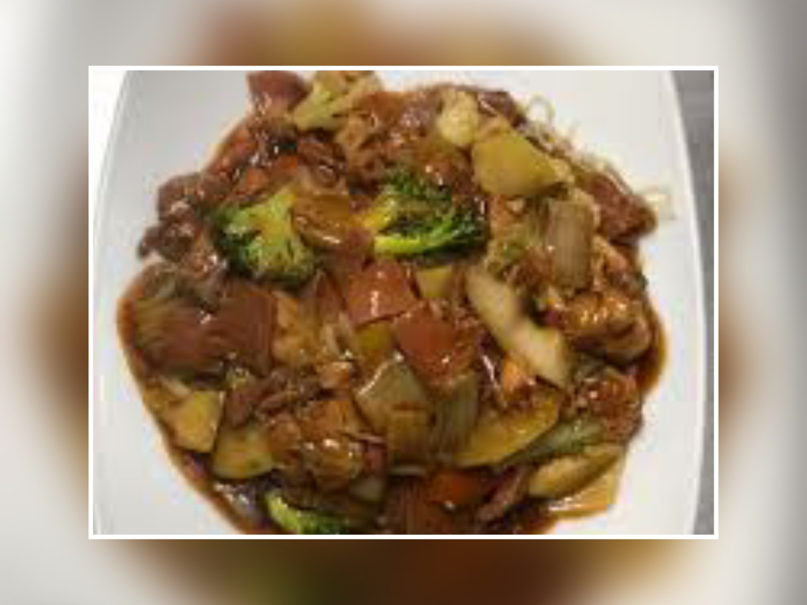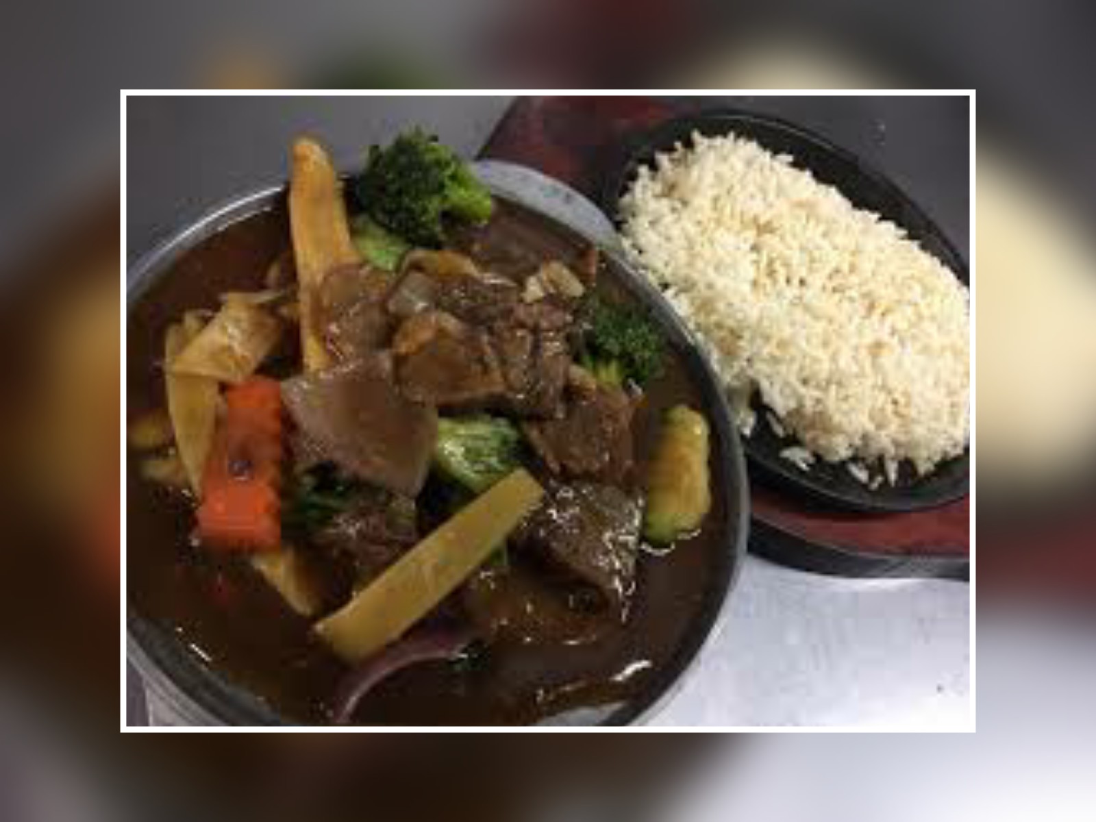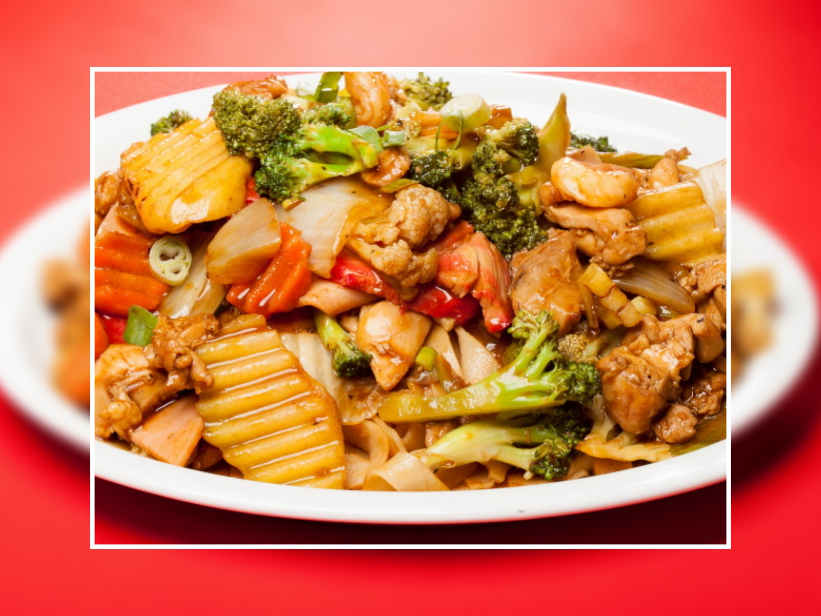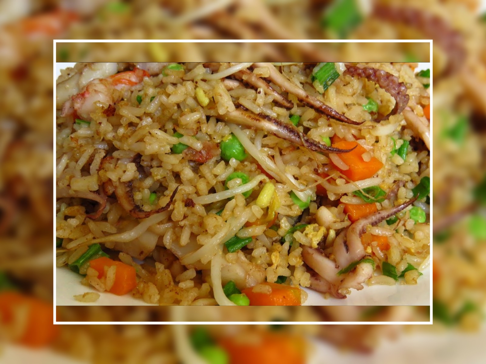 Con pollo, jamón, lechón, lomo, camarones y chorizo chino.