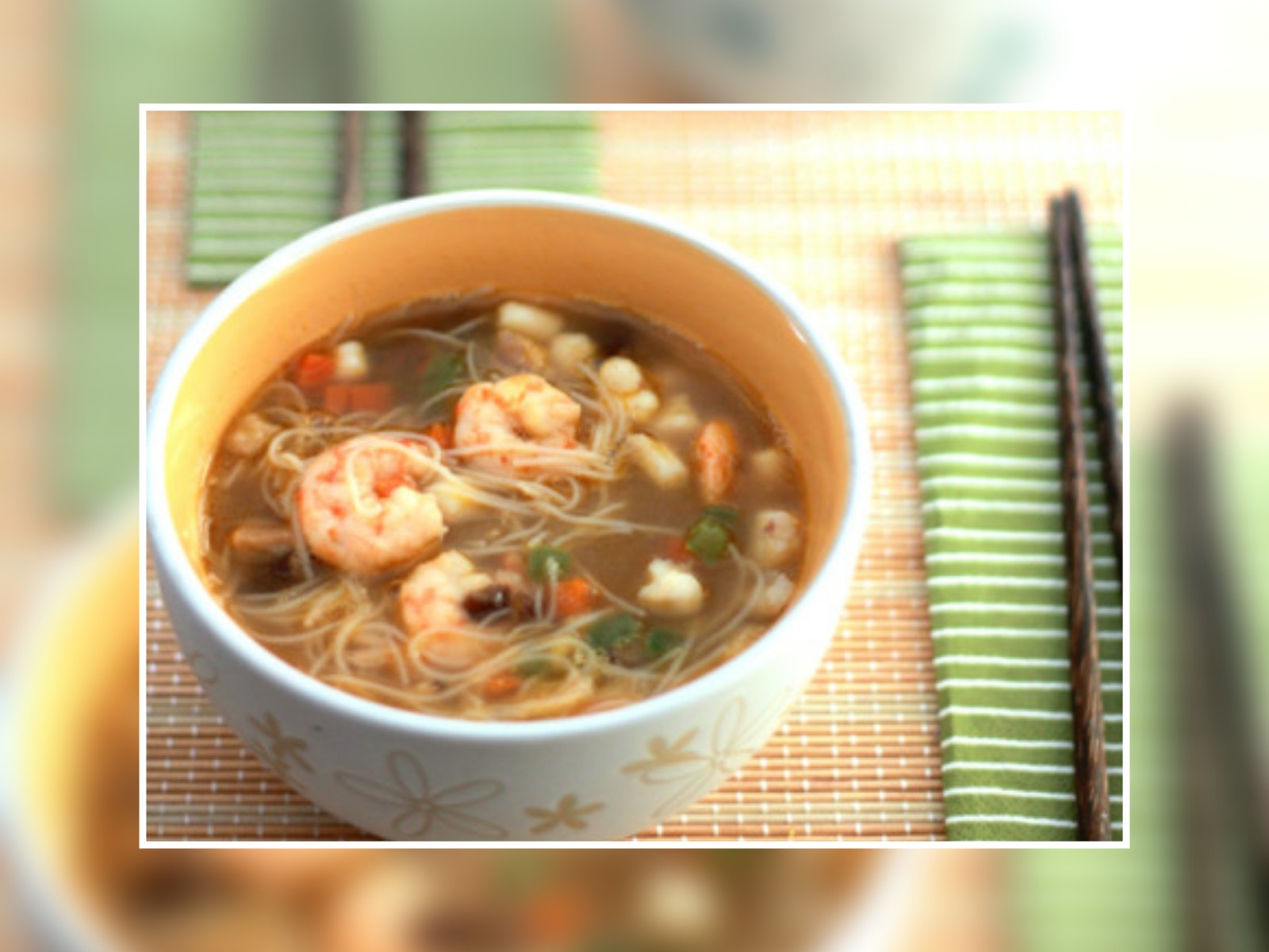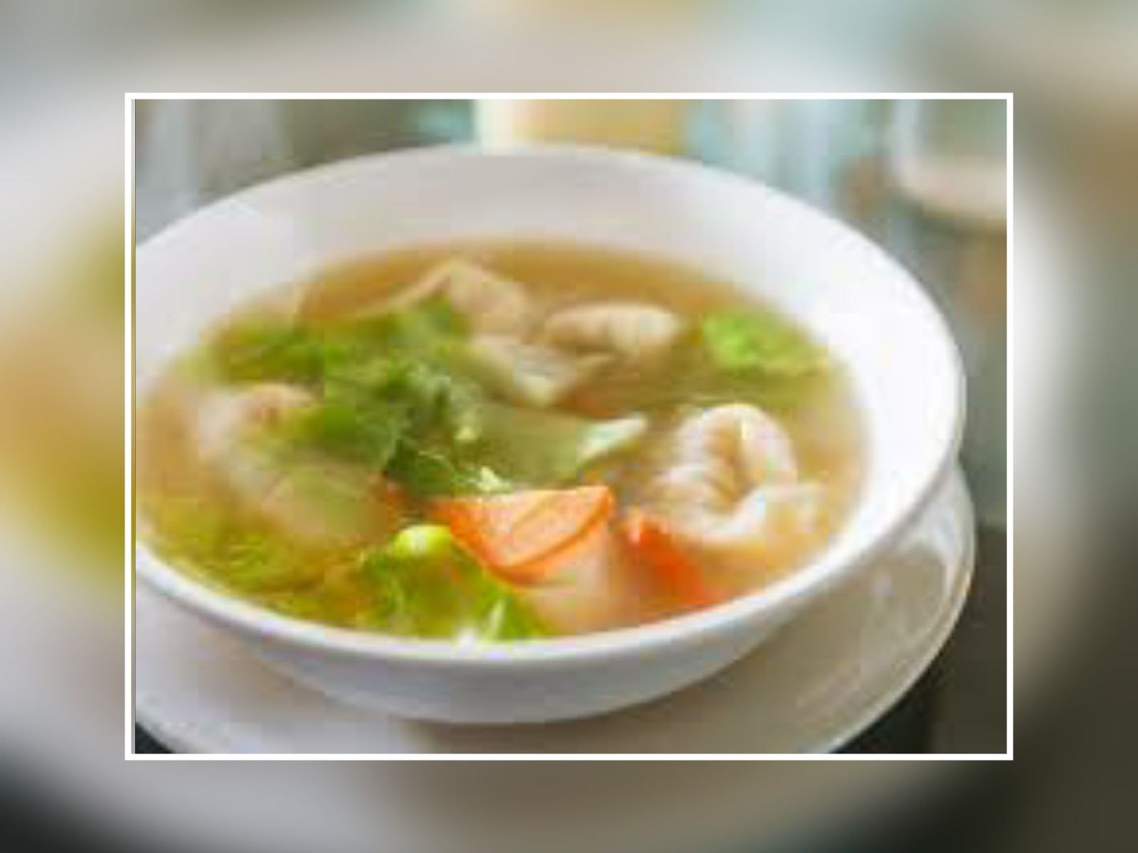 Sopa de Wantan con Pollo, Camarones y Verduras