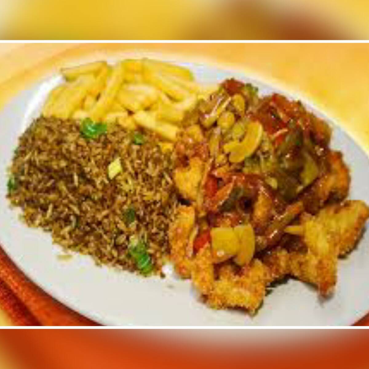 Trozos de Pollo Empanizados en Salsa Agridulce