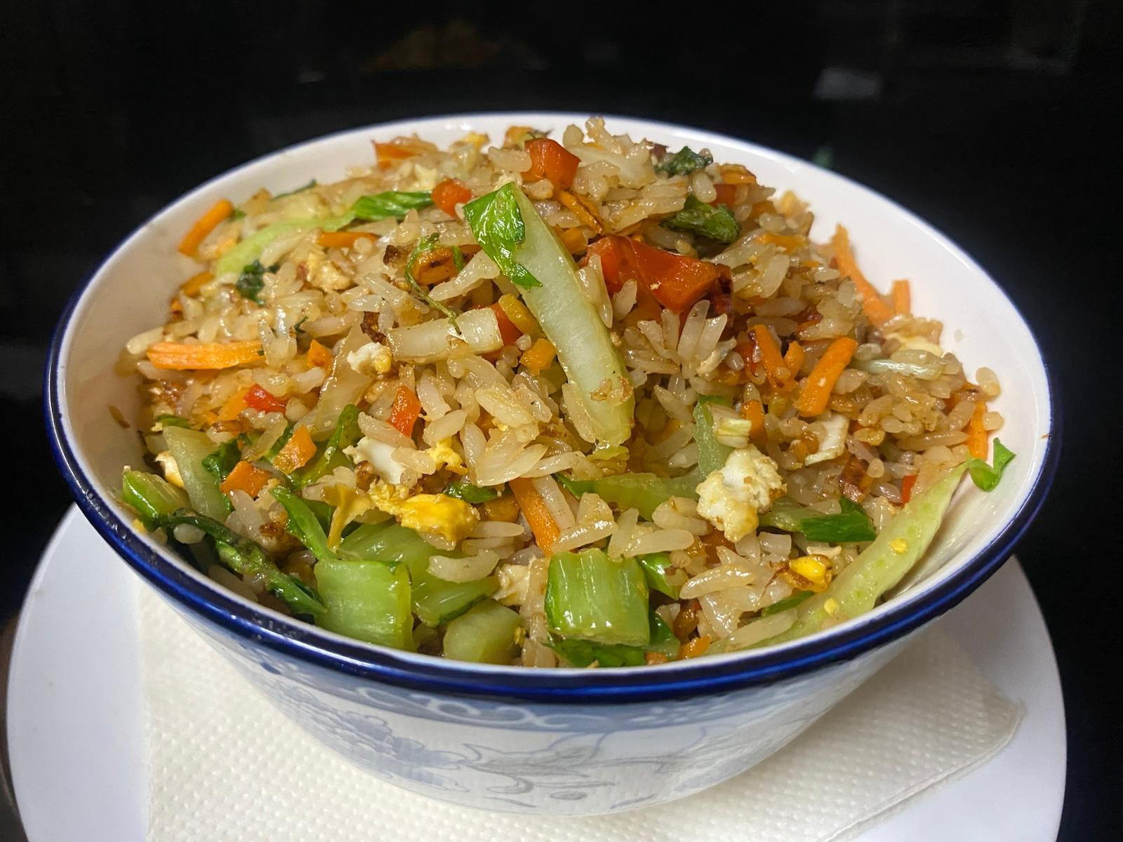 Arroz Yakimeshi (arroz con vegetales y huevo picado)