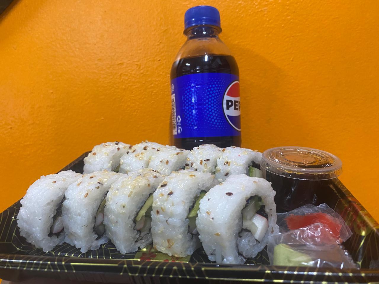 1 gaseosa pequeña y 1 rollo de 10 piezas