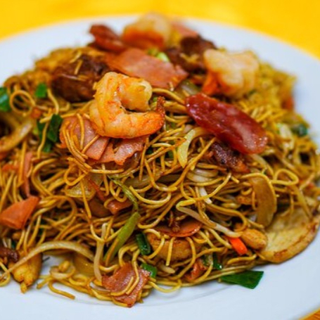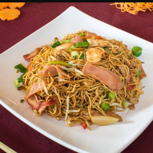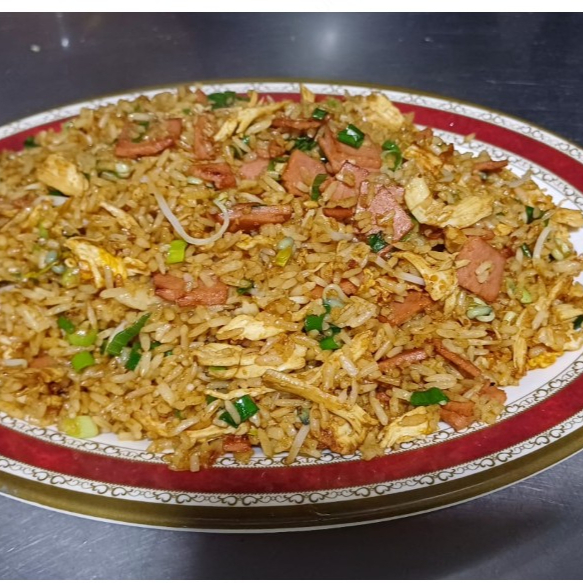 Entero o medio de arroz cantones, con lechón, jamón, pollo y olores (cebollino).