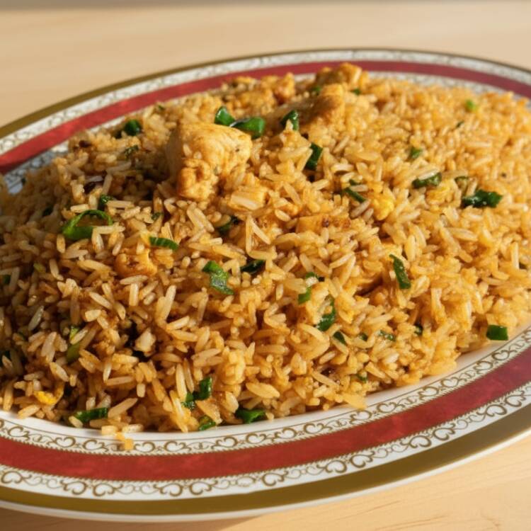 Entero o medio de arroz con pollo, olores (cebollino, cebolla).