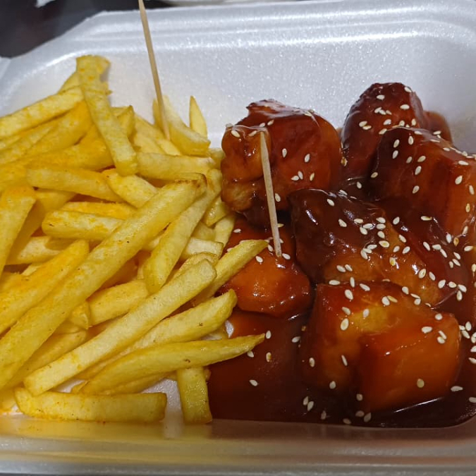 Entero o medio de chop suey tradicional, con verduras (zanahoria, vainica).