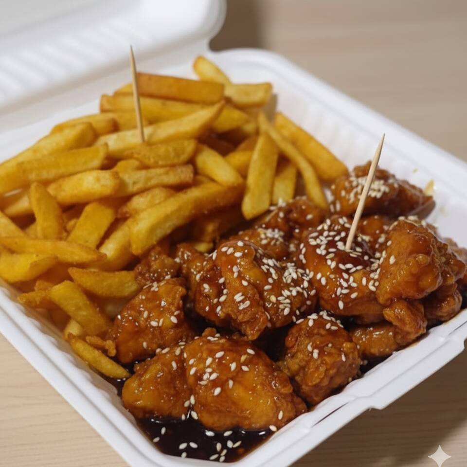 3 Alitas fritas enteras + 3 alitas con papas fritas.