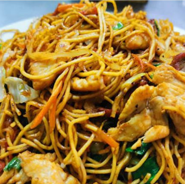 Delisioso chop suey en salsa cocinado con pollo,lomo yvegateles como repollo y zanzahoria