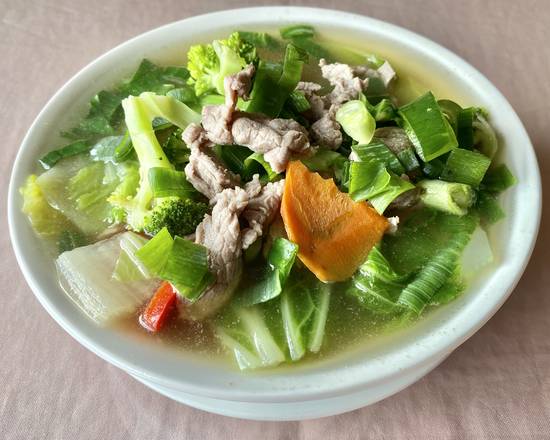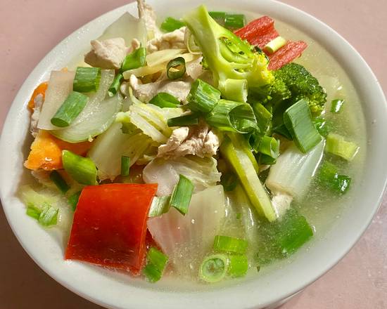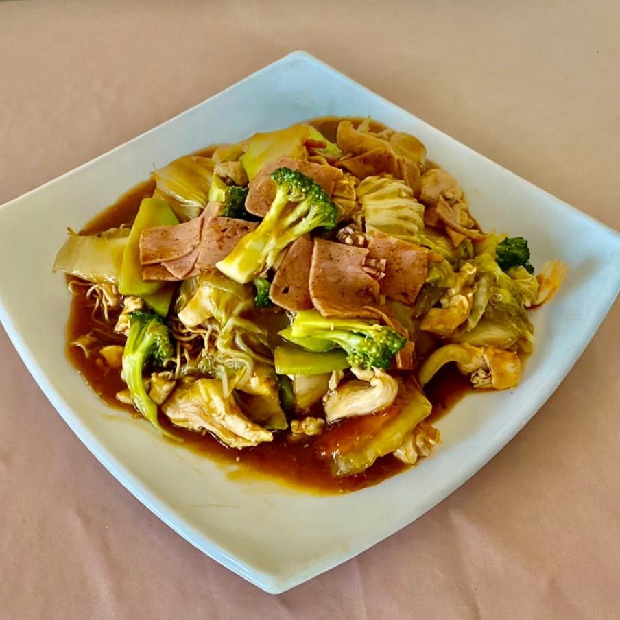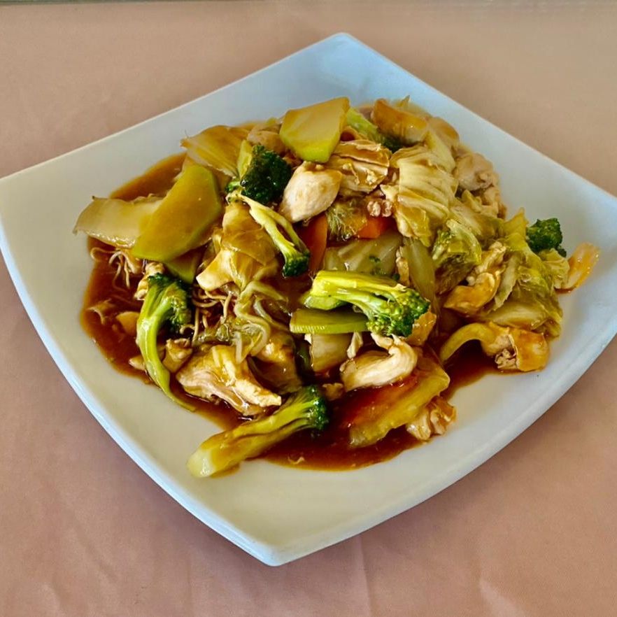 Saho Fan con Pollo y Verduras en Salsa Ostión