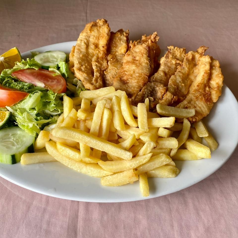 Filete Pechuga De Pollo Frita con Papas y Ensalada