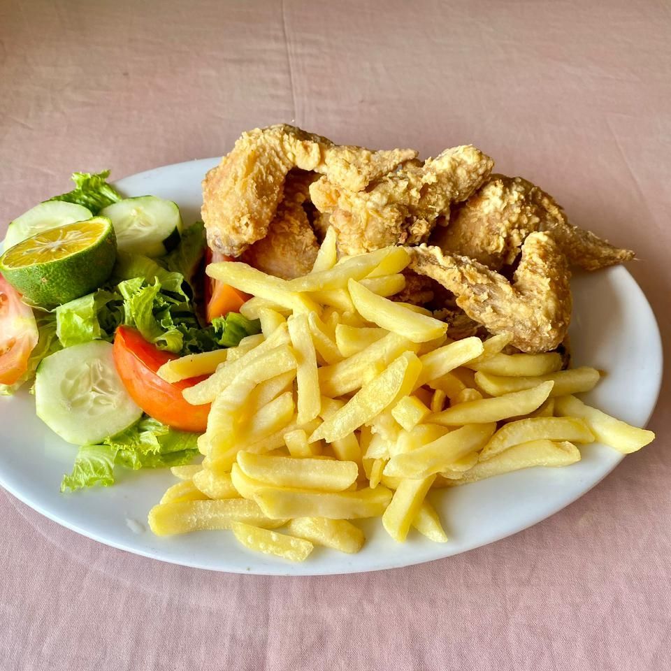 8 Alitas de Pollo Fritas con Papas y Ensalada