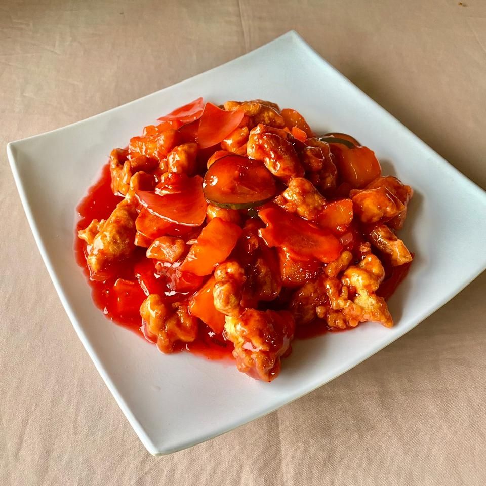 Pollo Frito en Trocitos en Salsa Agridulce y Piña