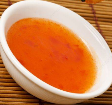 Trozos de lomito frito salsa de mandarina picante.