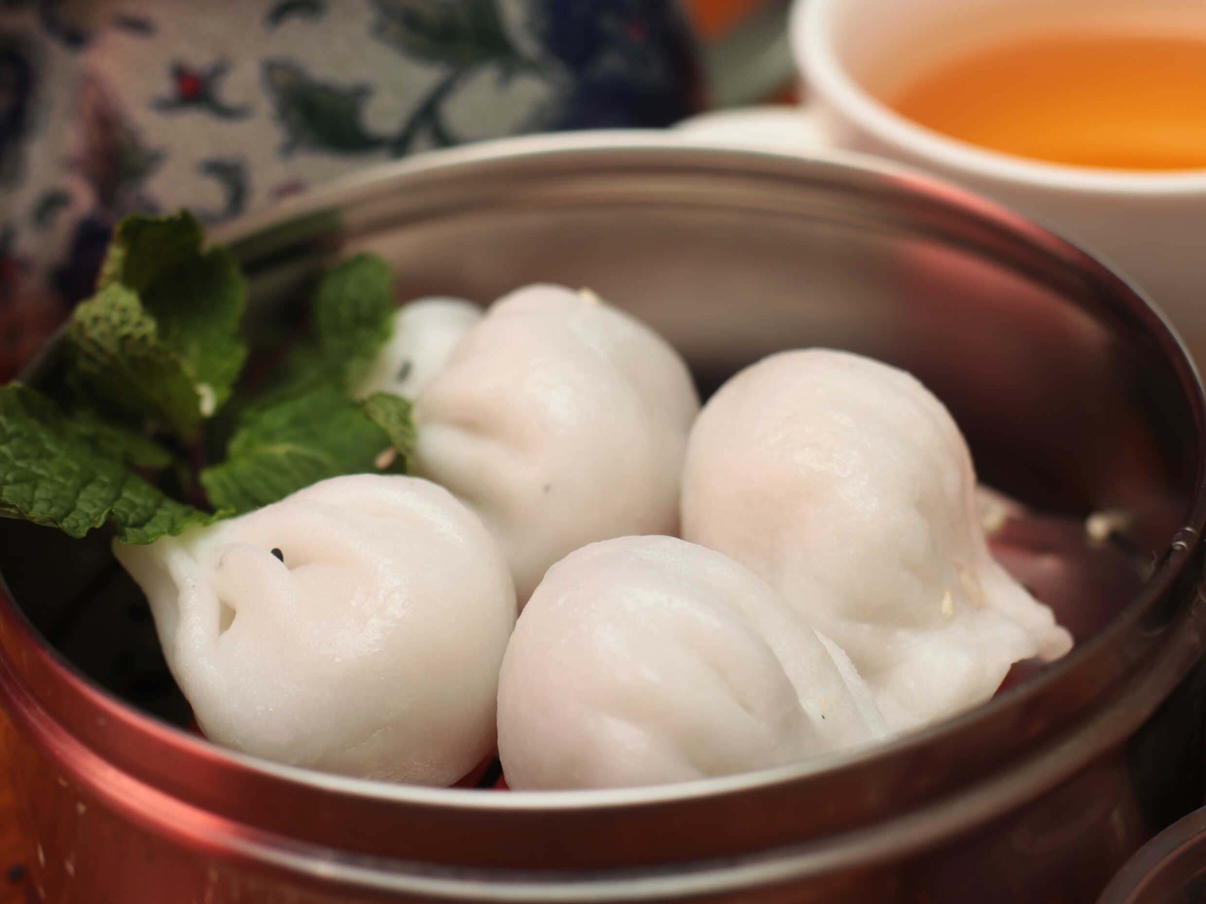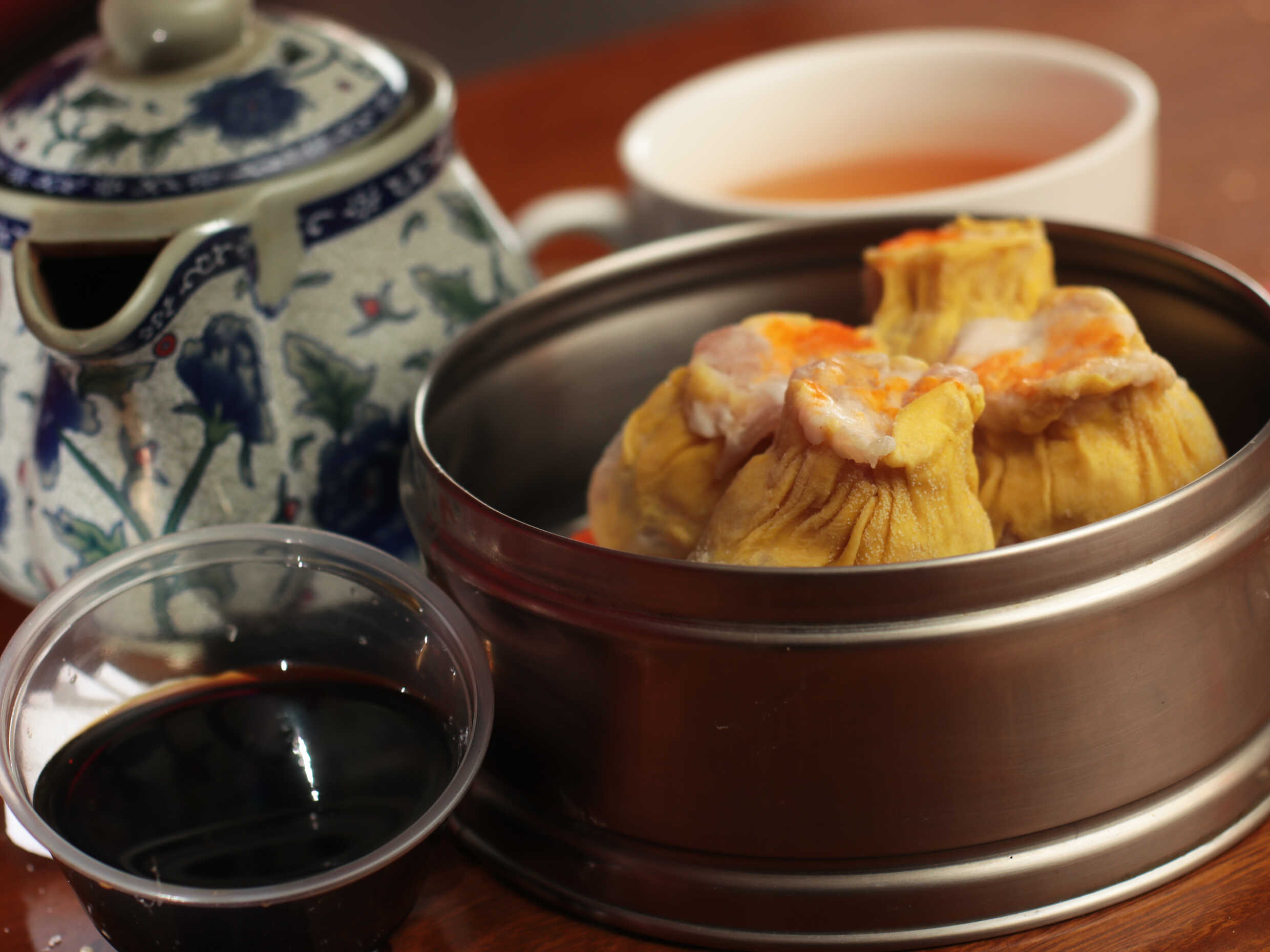 Toufu frito relleno de camarón o pollo en salsa especial.