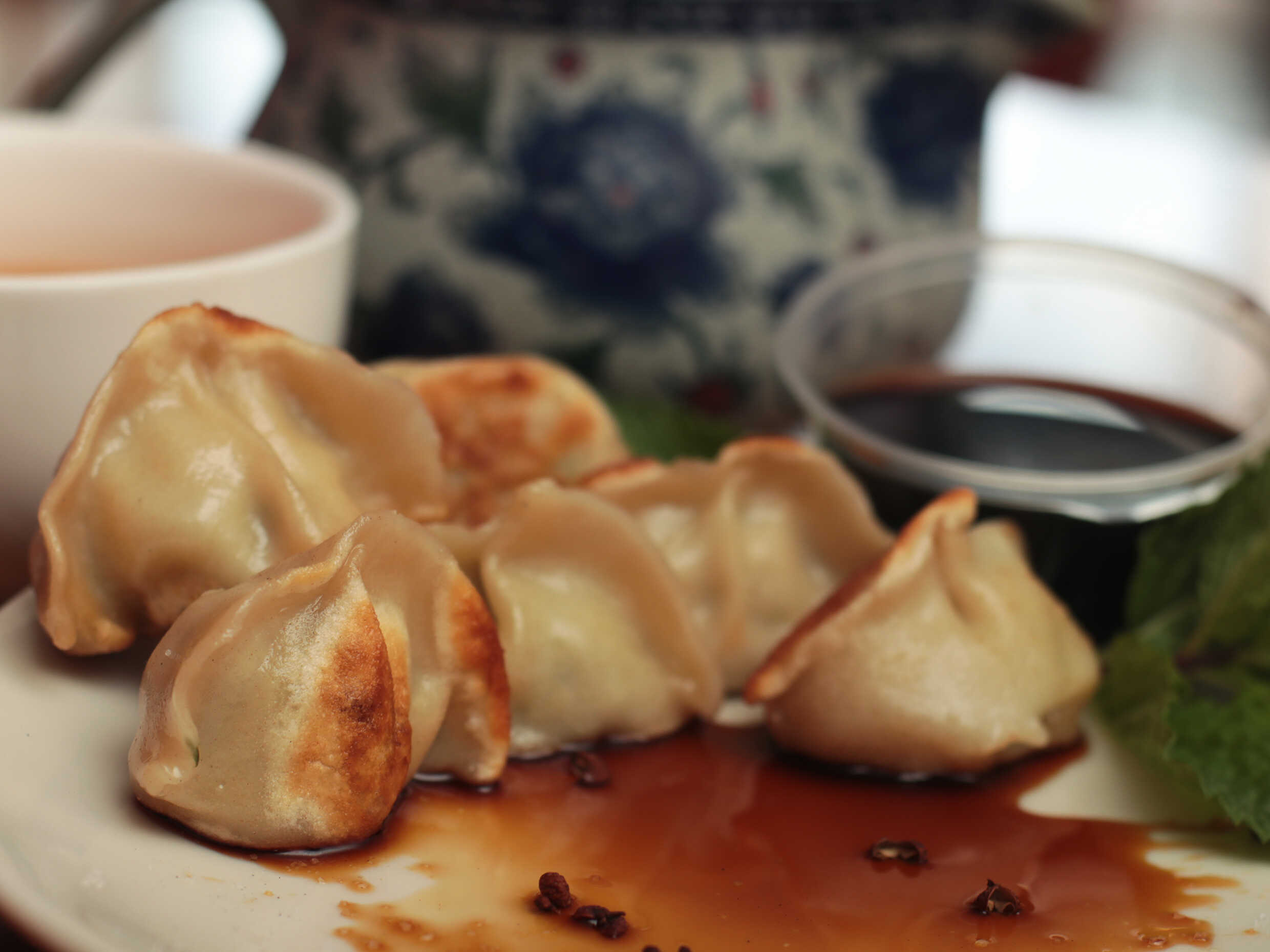 6 Unidades de empanaditas chinas al vapor o plancha, relleno de cerdo y vegetal.